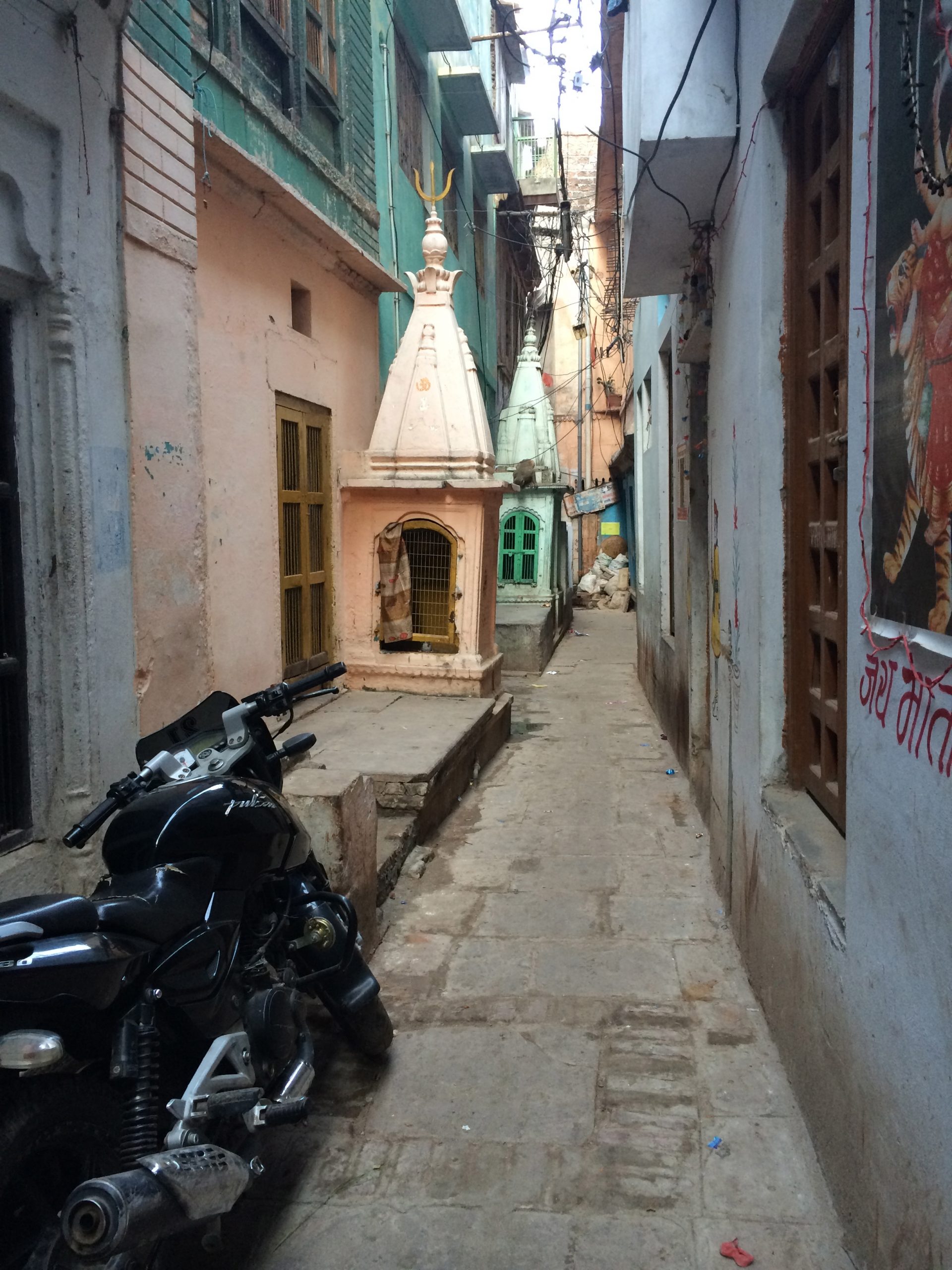 There are about 3,600 temples in Benares, I’ve been told. I walked through the old city last week and it felt as though there was a temple on every corner. Many of the ancient ones are gone, razed by Muslim invaders but some date back several hundred years. The city also claims 1,400 mosques.